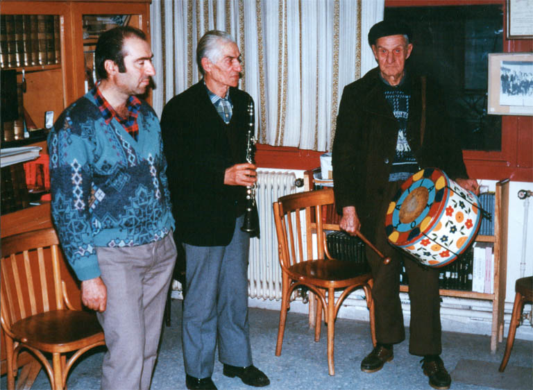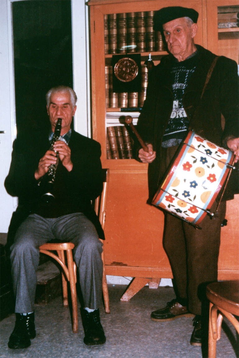 Είμαστε βγαλμένοι φωτογραφία το 1934 στα Πάμφιλα. Παίζαμε της Αγίας Βαρβάρας. Με τον πατέρα μου. Αυτός ζουρνά, εγώ νταβούλι.