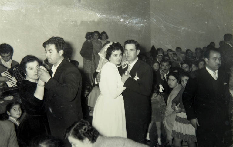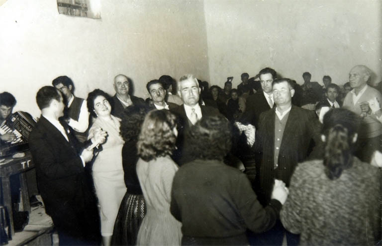 Τον στεφάνωσα εγώ. Δεν θυμάμαι τώρα ποια χρονιά. Εγώ παντρεύτηκα το ’58 […] λεύτερος τον στεφάνωσα! Ε, να τώρα το ’57, το ’58 […]. Στο Πλατύ έγινε ο γάμος. Μεσ’ στην πλατεία έγινε ο γάμος. Δεν παίξαμε. Χορεύαμε εμείς.